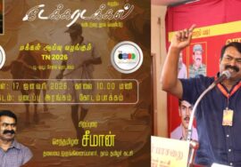 வாக்காளர் பட்டியல் (SIR) சிறப்பு தீவிரத் திருத்தத்தை உடனடியாக நிறுத்தக்கோரி, நாம் தமிழர் கட்சி சார்பாக, நாளை கார்த்திகை 01ஆம் நாள் 17-11-2025 பிற்பகல் 02 மணியளவில் சென்னை, எழும்பூரில் உள்ள இராஜரத்தினம் விளையாட்டுத் திடல் அருகில் மாபெரும் கண்டன ஆர்ப்பாட்டம் நடைபெறவிருக்கிறது.
