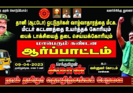 Contact Us To Add Your Business தானி (ஆட்டோ) ஓட்டுநர்களின் வாழ்வாதாரத்தை மீட்க நடவடிக்கைகள் எடுக்கக்கோரியும், மீட்டர் கட்டணத்தை உயர்த்தக் கோரியும், பைக் டாக்சியைத் தடை செய்யக்கோரியும் தமிழ்நாடு அரசை