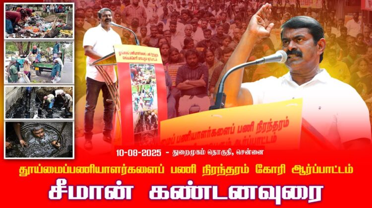 10-08-2025 சீமான் கண்டனவுரை | தூய்மைப்பணியாளர்களைப் பணி நிரந்தரம் கோரி ஆர்ப்பாட்டம்