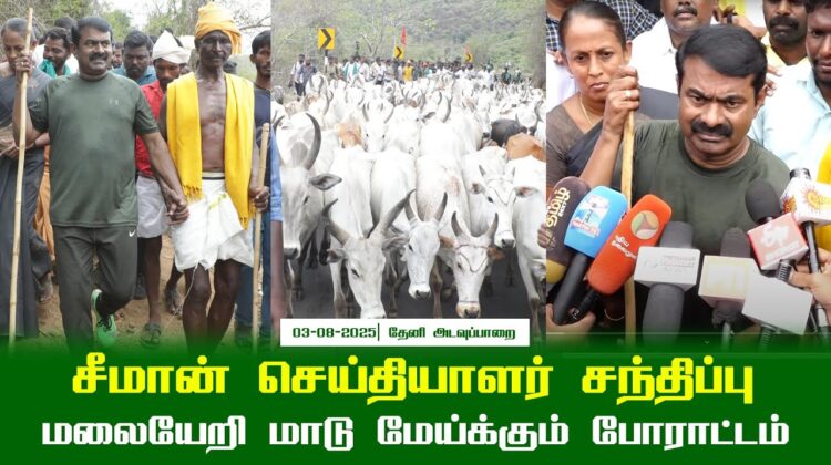 03-08-2025 | சீமான் செய்தியாளர் சந்திப்பு – மலையேறி மாடு மேய்க்கும் போராட்டம் | தேனி – அடவுப்பாற